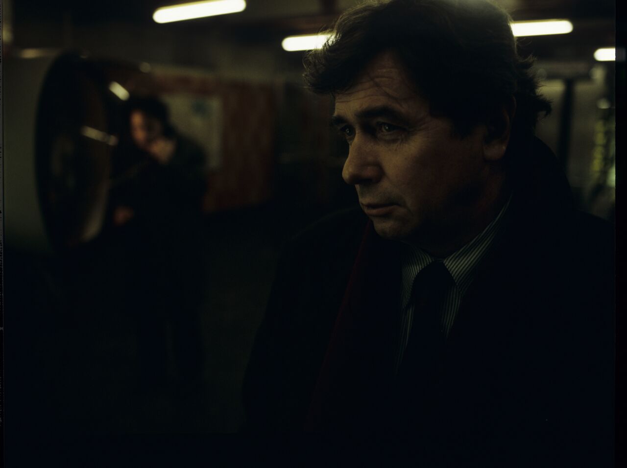 Mikołaj (Janusz Gajos) at the exit of the Paris metro. In the background, Karol (Zbigniew Zamachowski) tries to call his wife Dominique.