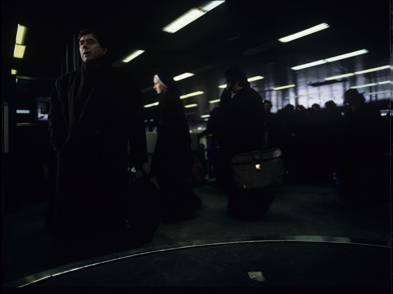 Mikołaj (Janusz Gajos) is waiting for his luggage in the arrivals hall at the Warsaw airport.