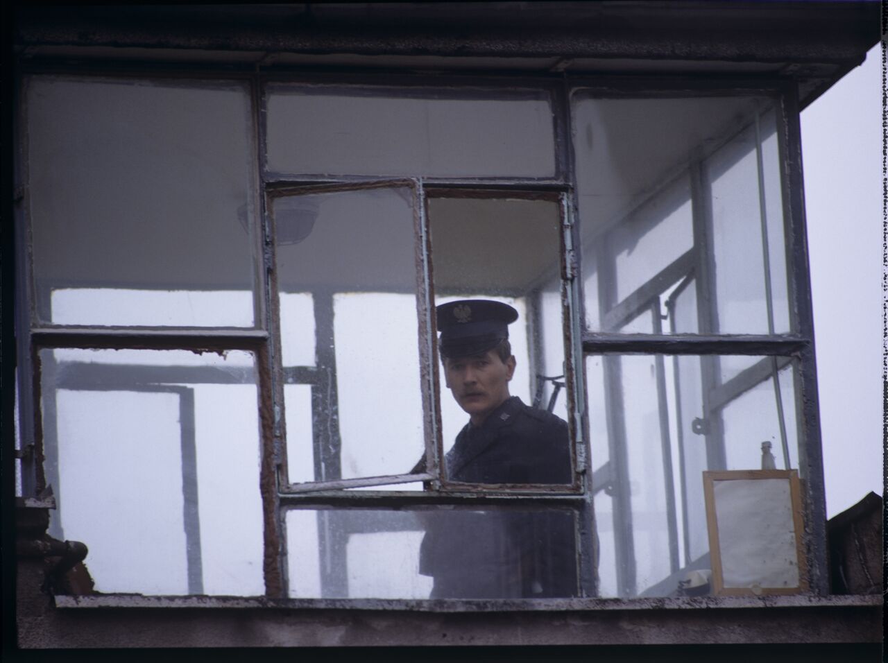 A guard in the watchtower of the prison where Karol’s wife, Dominique, is serving her sentence.