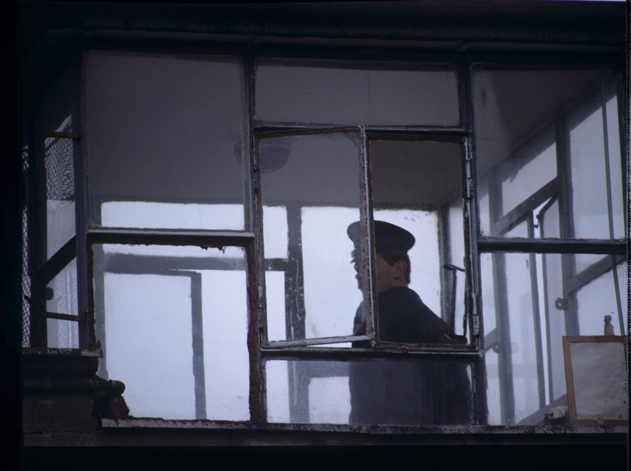 A guard in the watchtower of the prison where Karol’s wife, Dominique, is serving her sentence.