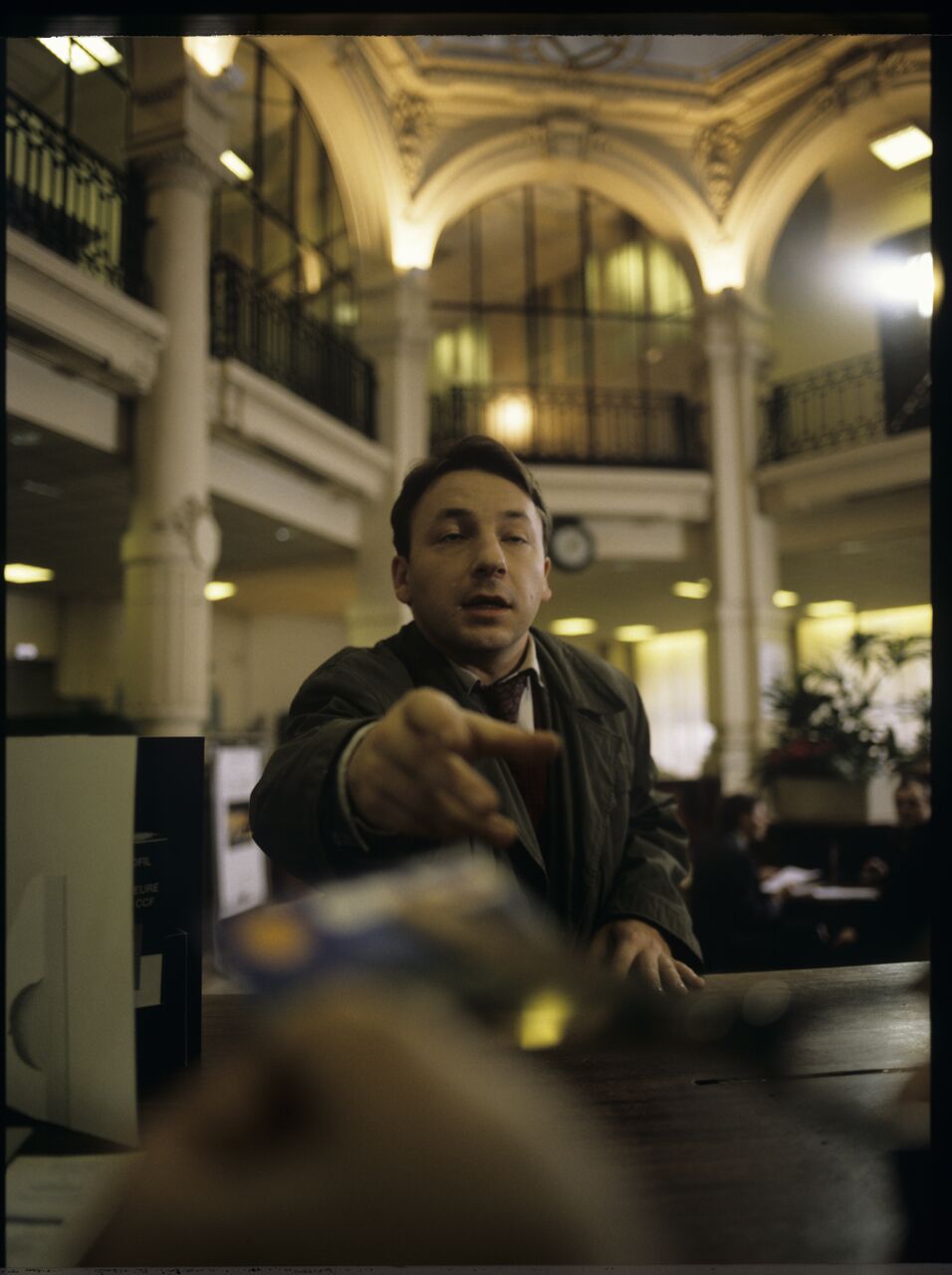 A scene in a bank in which an official informs Karol (Zbigniew Zamachowski) about blocking his account and destroys his card.