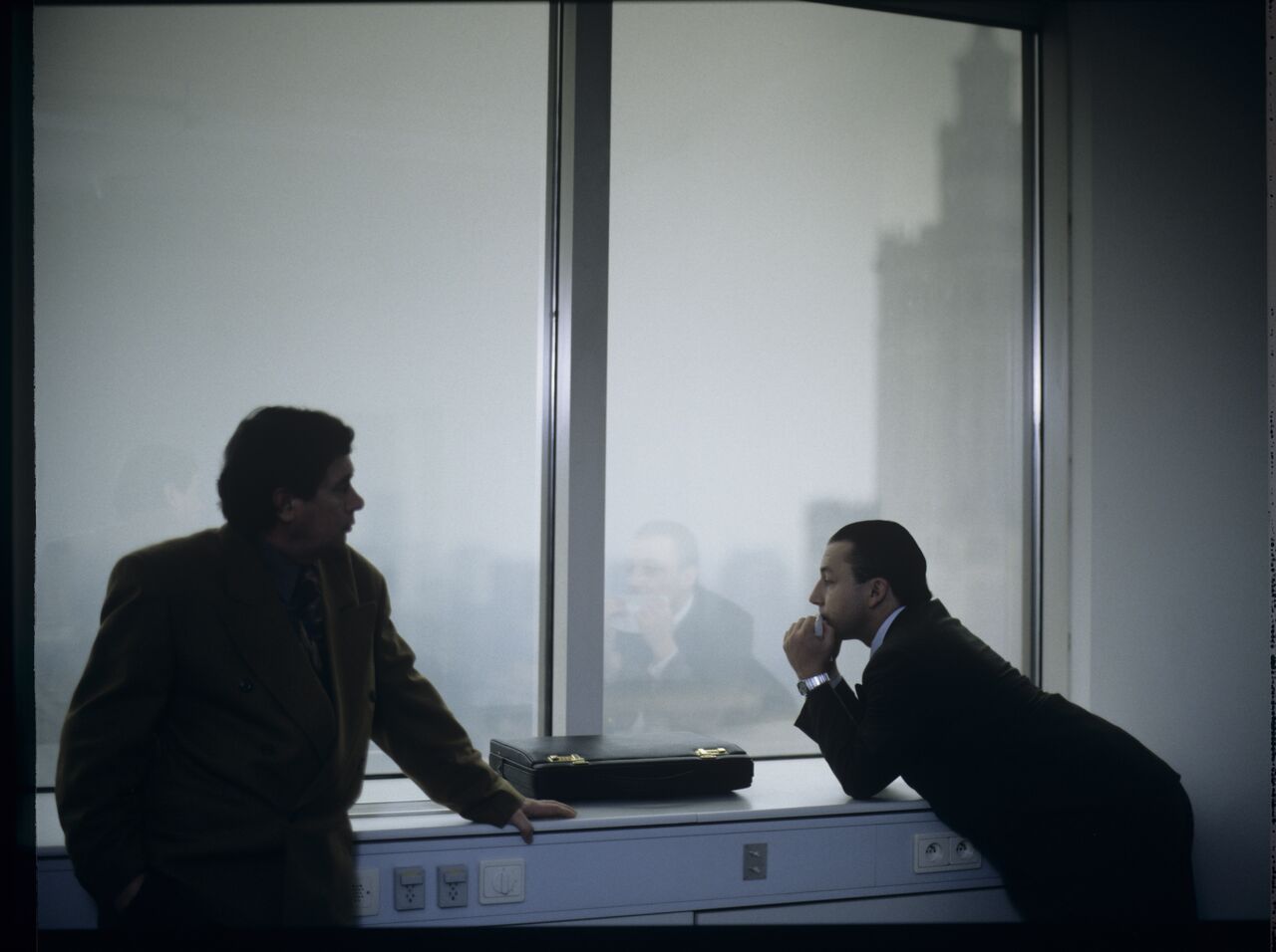 Karol (Zbigniew Zamachowski) and Mikołaj (Janusz Gajos) in Karol’s new office at the Marriott Hotel. Karol plays a melody on a comb that evokes memories of the friends’ first meeting on the Paris Metro.