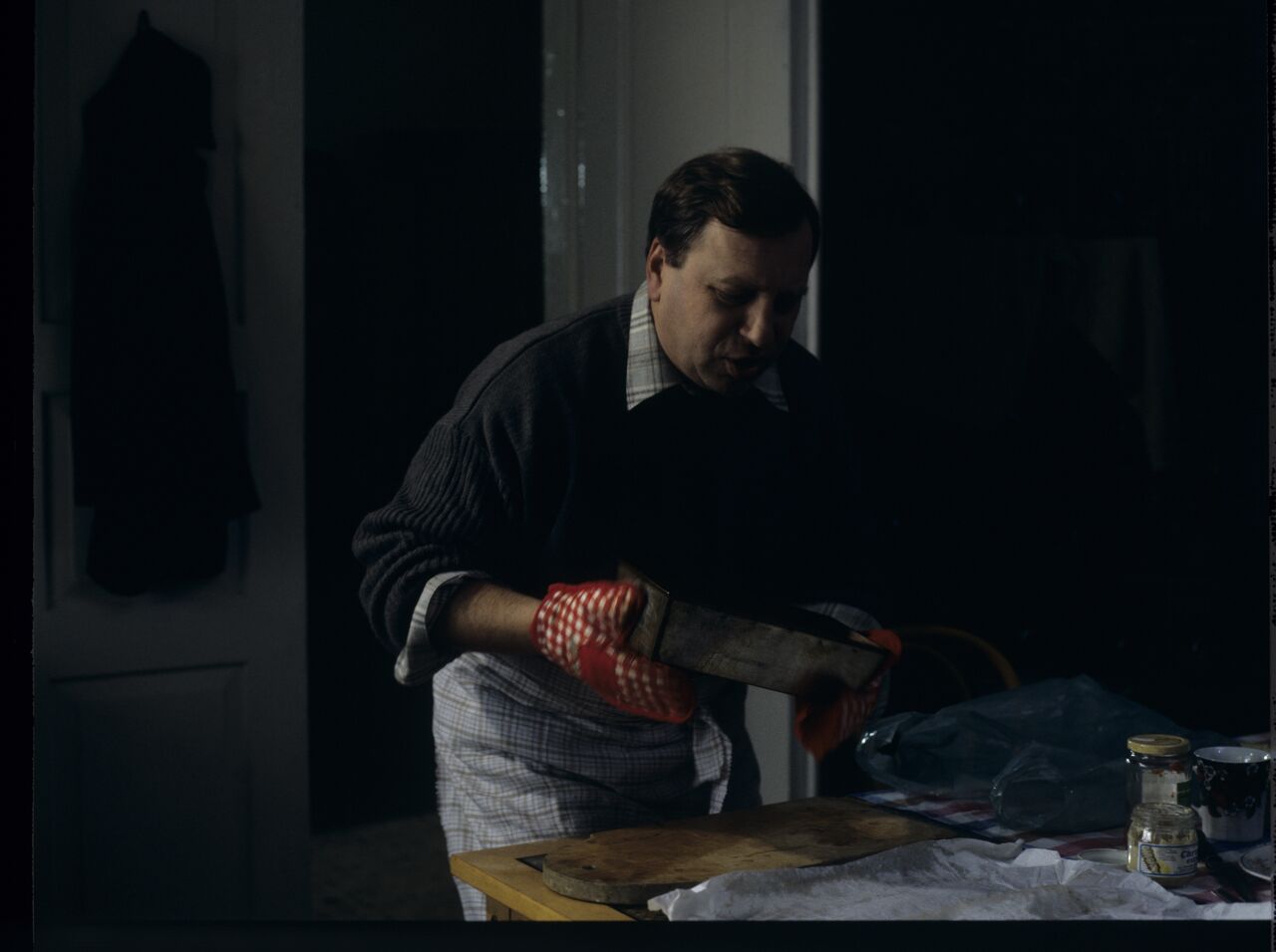 Karol’s brother, Jurek (Jerzy Stuhr), is preparing food for Dominique, who is serving a prison sentence for the murder of her husband.