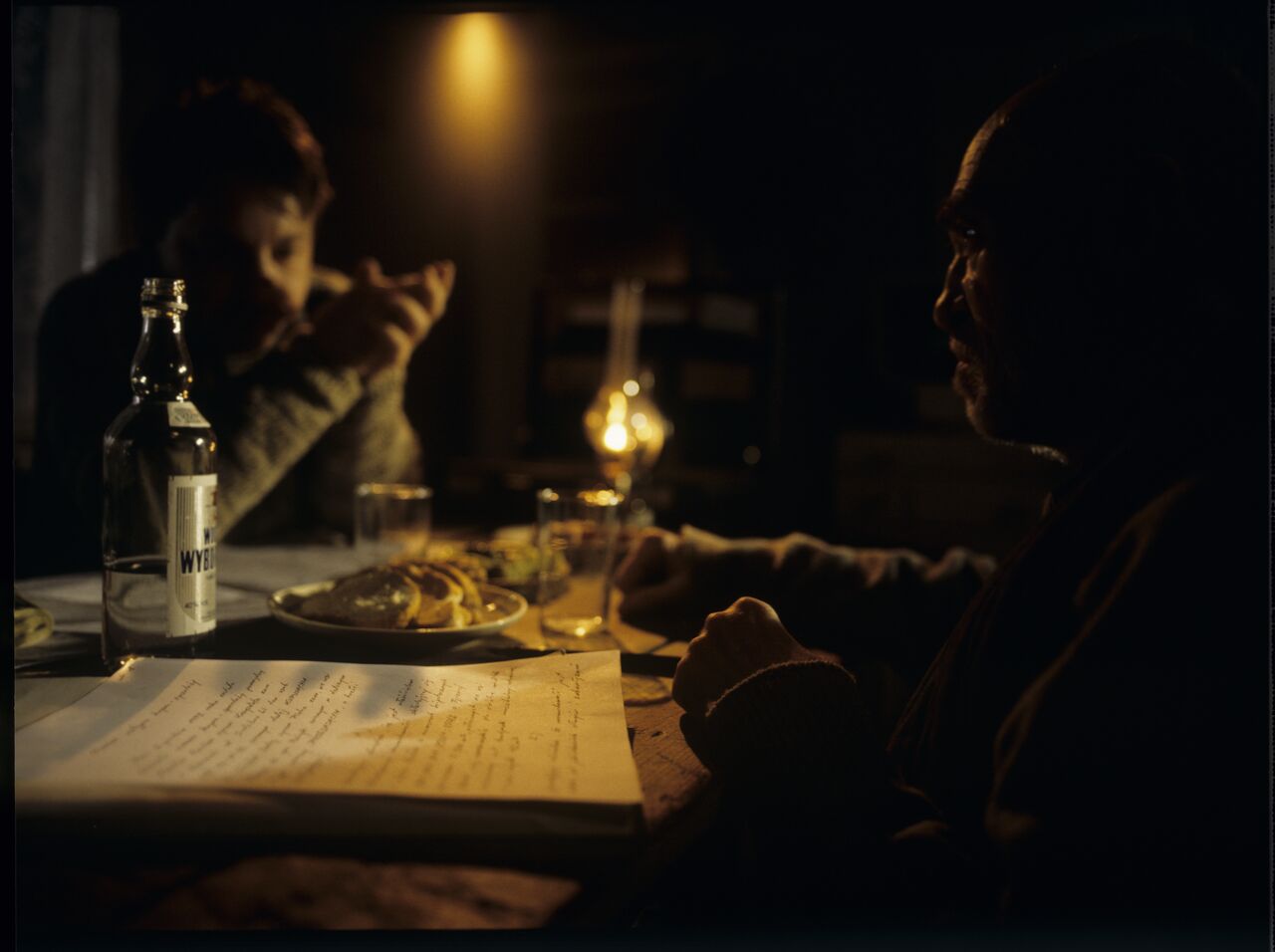 Karol (Zbigniew Zamachowski) persuades the host (Jerzy Nowak) to sell the land.