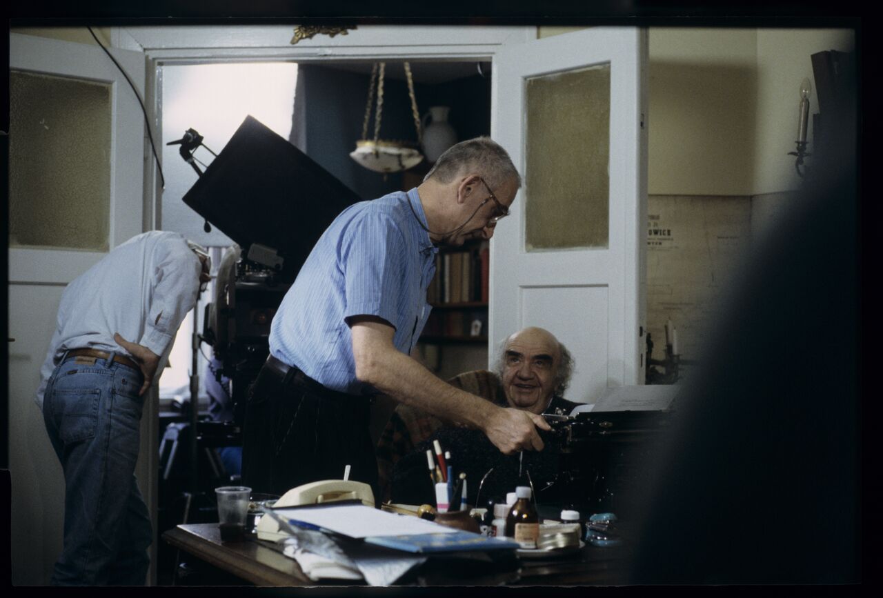 Filming a scene in a notary’s office. Pictured: Aleksander Bardini as the notary and Krzysztof Kieślowski (director).