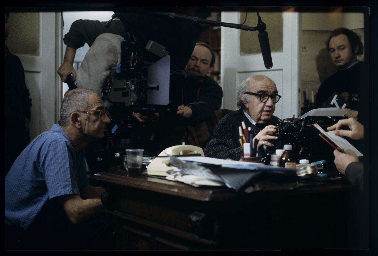 Filming a scene in a notary’s office. Pictured: Aleksander Bardini as the notary, Krzysztof Kieślowski (director), Edward Kłosiński (cinematographer), Henryk Jedynak (associate cinematographer).