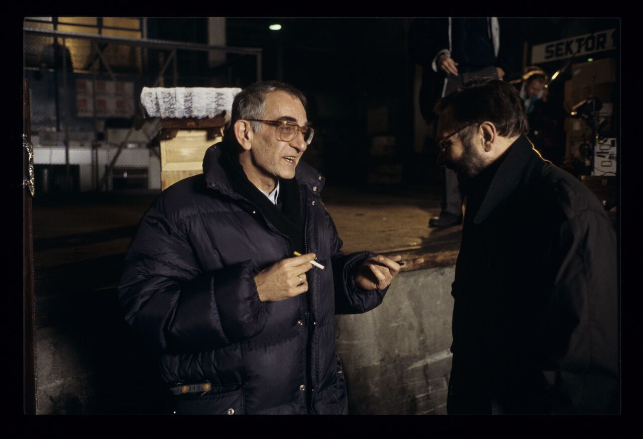 Krzysztof Kieślowski and Krzysztof Zanussi. Photo taken during the filming of “Three Colors. White”.