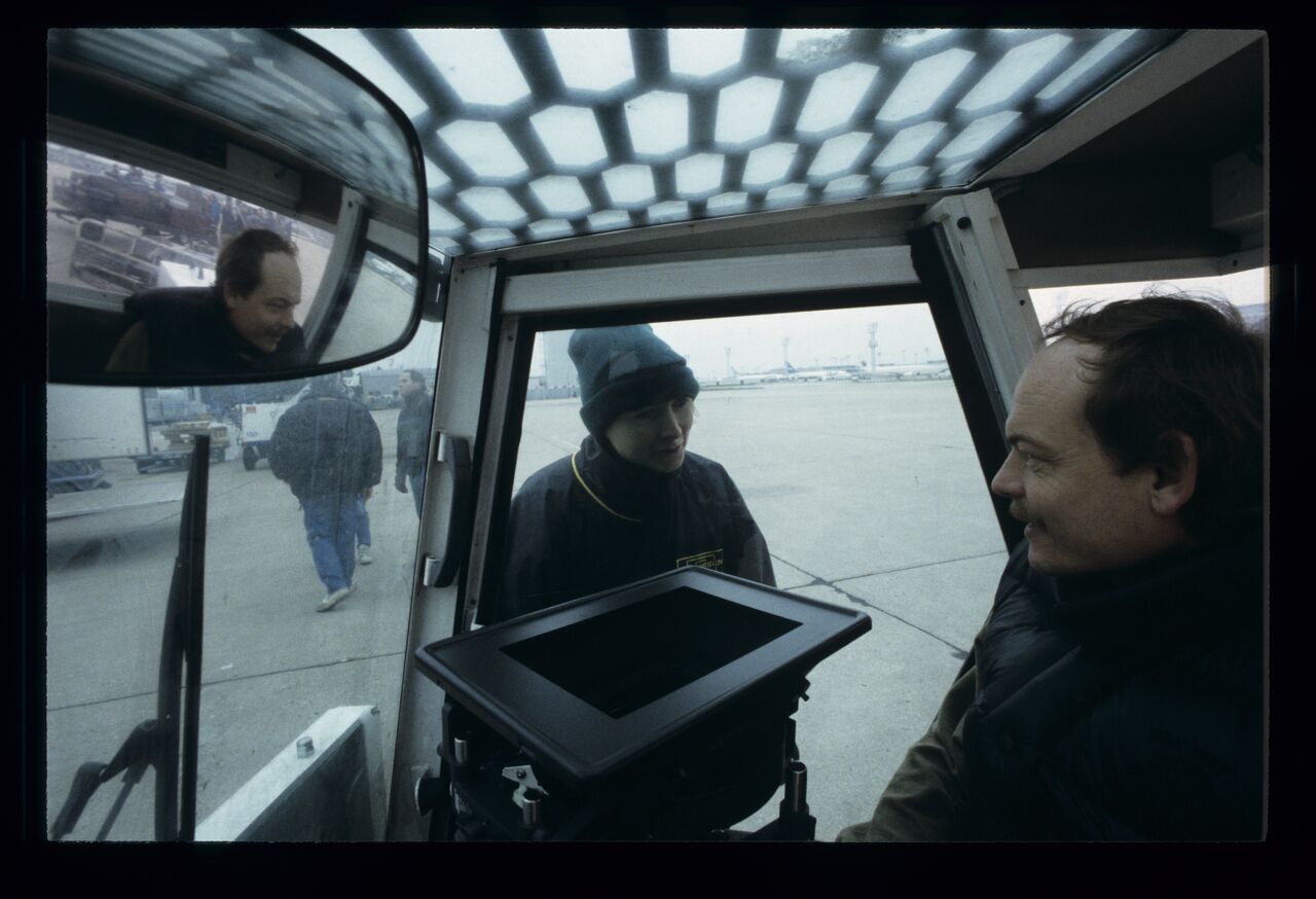 Camera associates Henryk Jedynak and Muriel Coulin at Orly Airport in Paris.