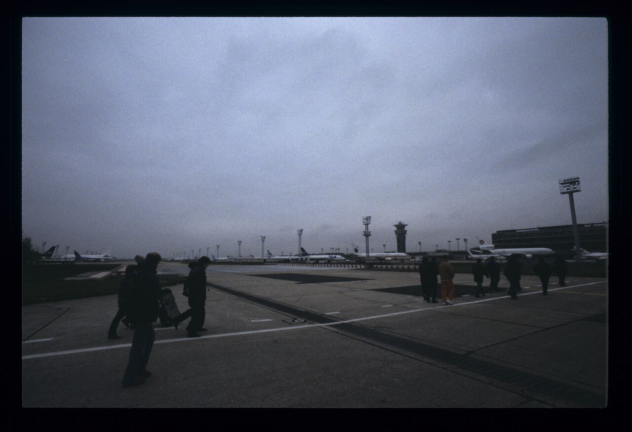 The crew on the tarmac at Orly Airport on the outskirts of Paris.