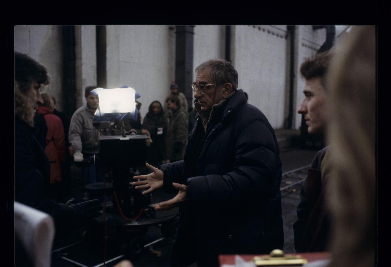 Krzysztof Kieślowski (director) and Edward Kłosiński (cinematographer) working on the set in the warehouse of Karol’s new company.
