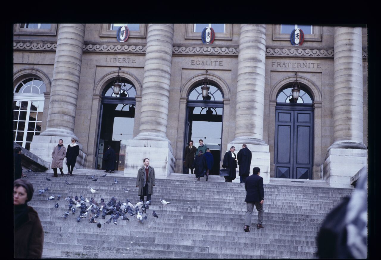 The steps in front of the Parisian Palace of Justice. Karol (Zbigniew Zamachowski) exits the building after his divorce proceedings.