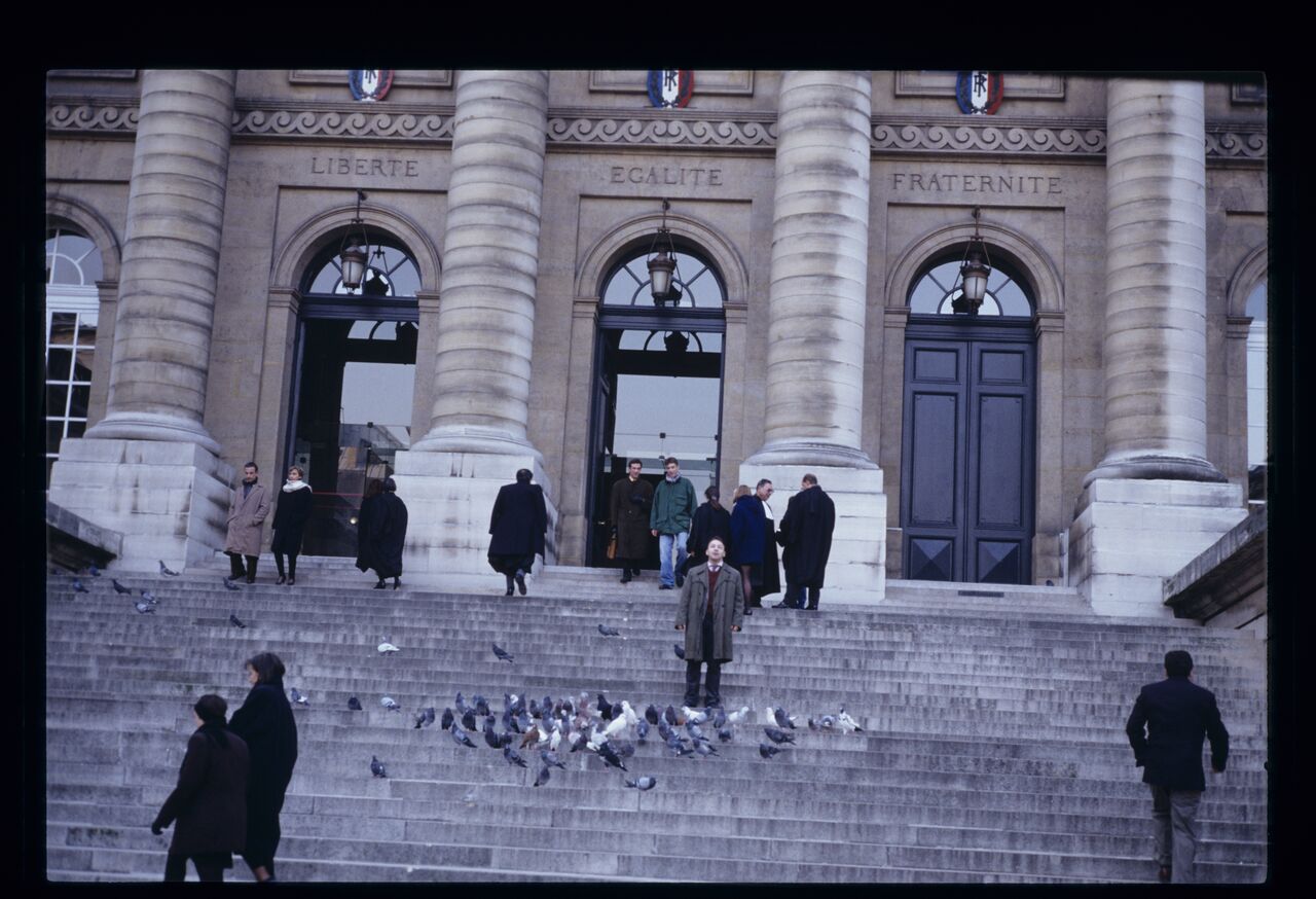 The steps in front of the Parisian Palace of Justice. Karol (Zbigniew Zamachowski) exits the building after his divorce proceedings.