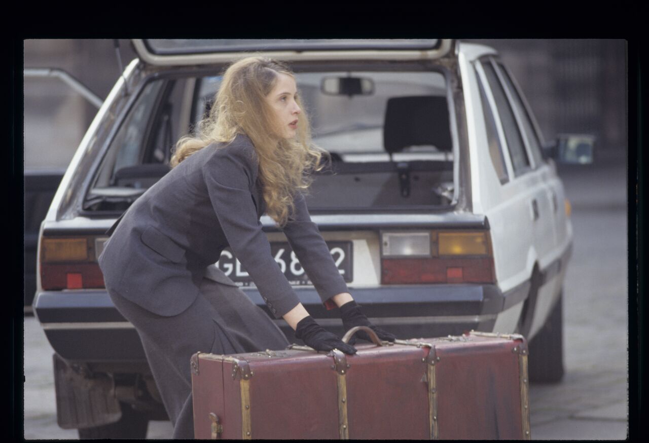 Dominique (Julie Delpy), after the divorce hearing, throws a suitcase with Karol’s (Zbigniew Zamachowski) belongings out of the car.