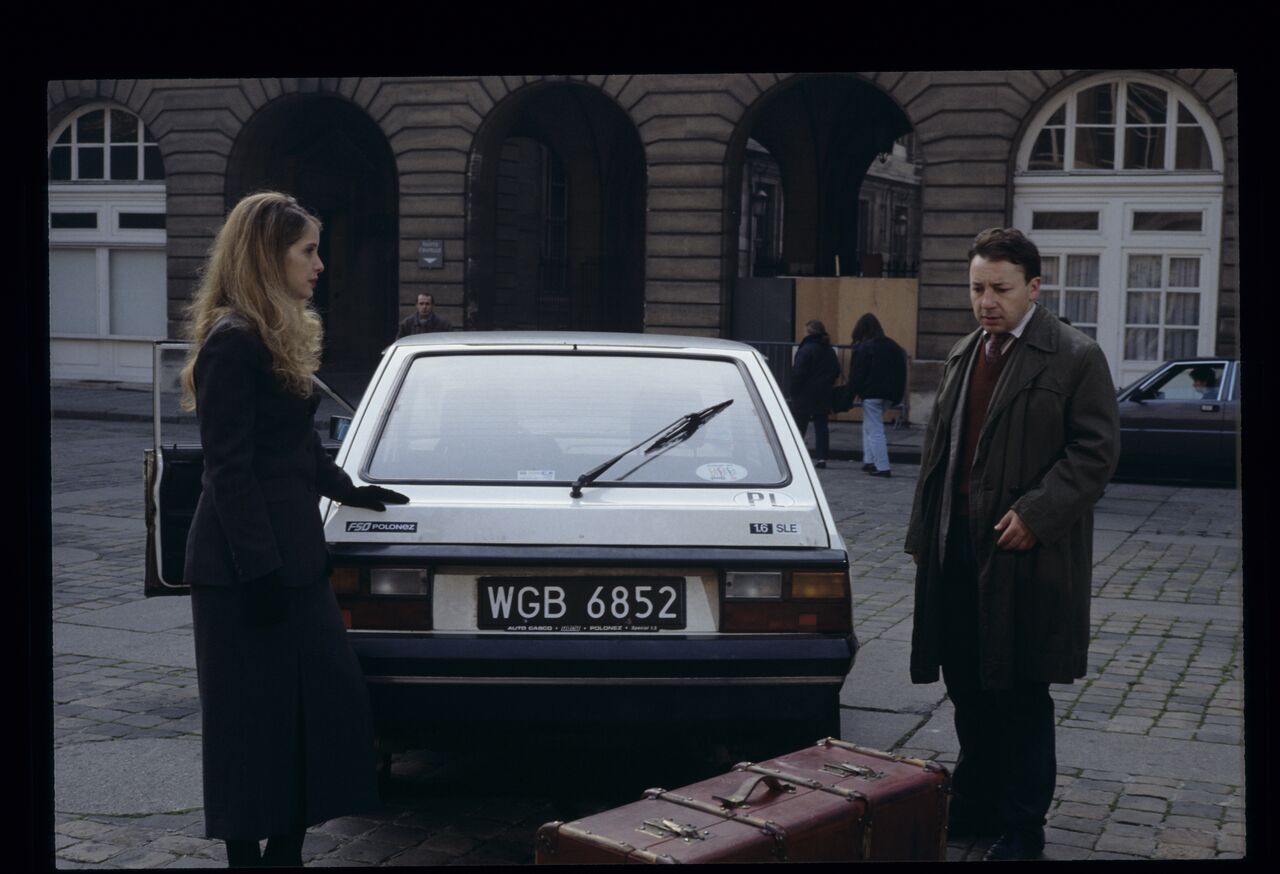 Dominique (Julie Delpy) is saying goodbye to Karol after the divorce case in front of the courthouse.
