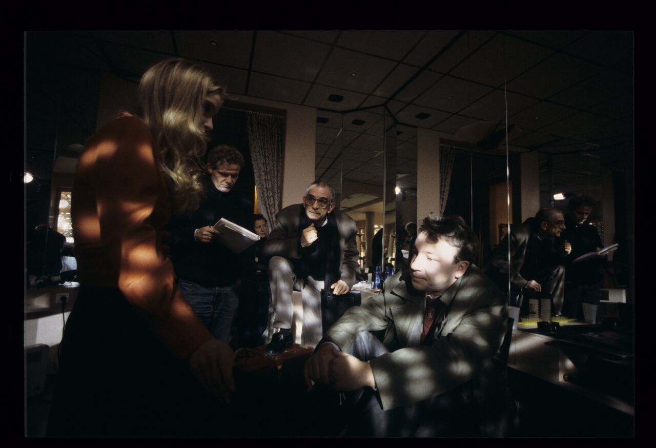A makeup artist prepares Zbigniew Zamachowski (who plays Karol) for a shot at a Paris hairdresser’s shop.