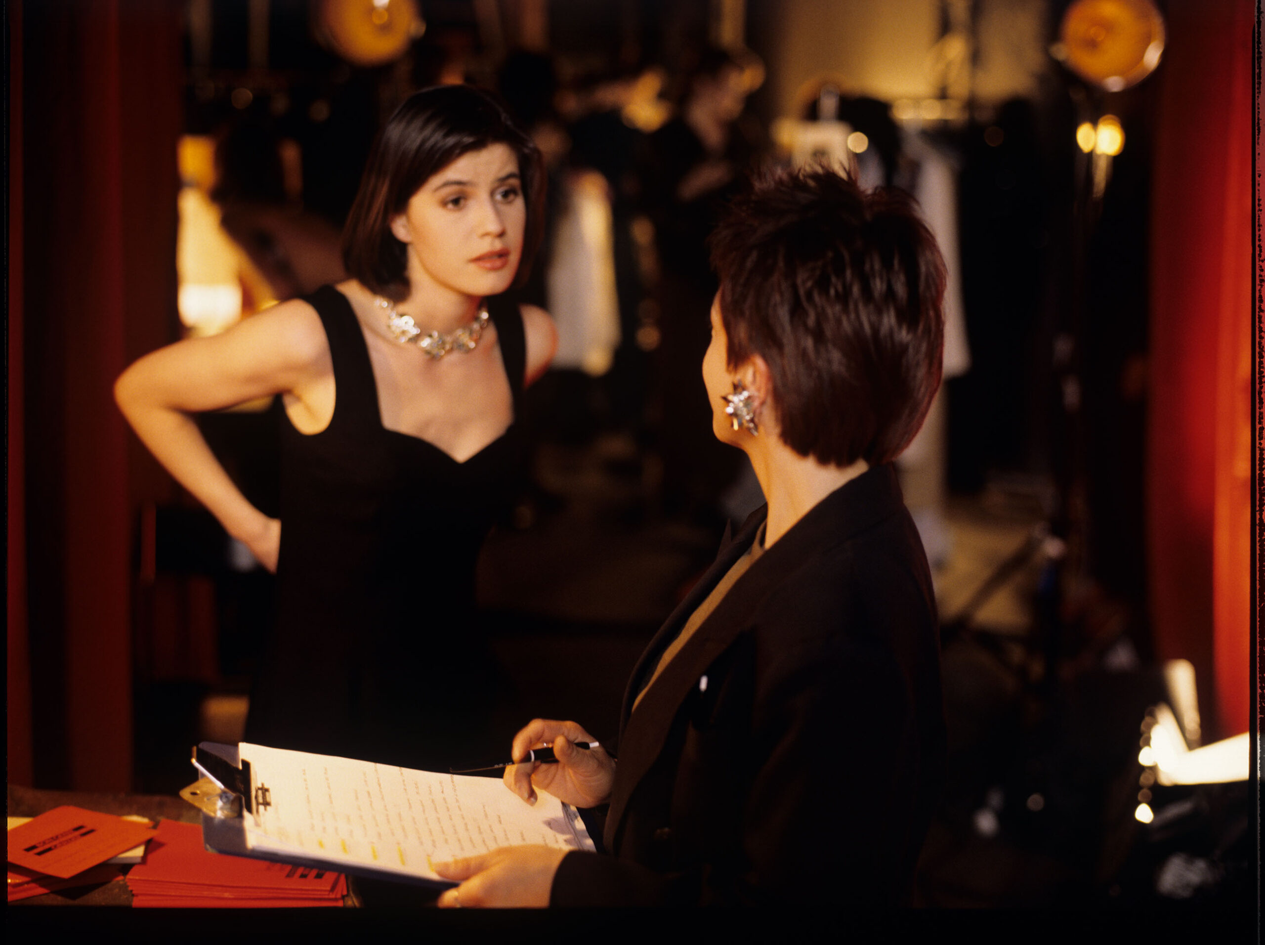 Fotos presenting Valentine (Irene Jacob) preparing for the fashion show