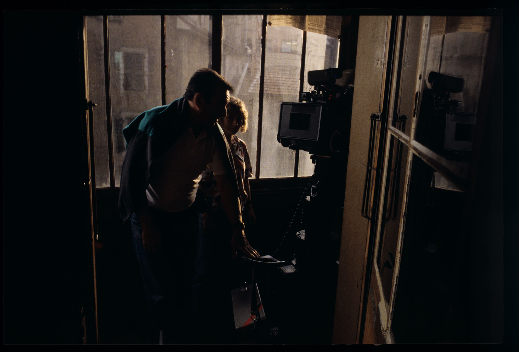 Photo set in the stairwell in front of Valentine’s apartment. The photo shows assistant cameraman Muriel Coulin and a member of the technical team.
