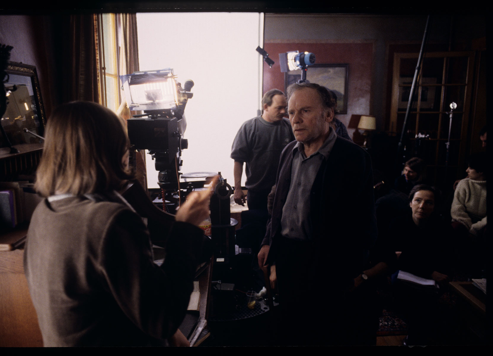 Filming a scene in the judge’s apartment. In the foreground are the actors: Jean-Louis Trintignant as retired judge Joseph Kern and Irene Jakob as Valentine, in the background are the crew members – including assistant cameraman Henryk Jedynak and set secretary Genevieve Dufour.
