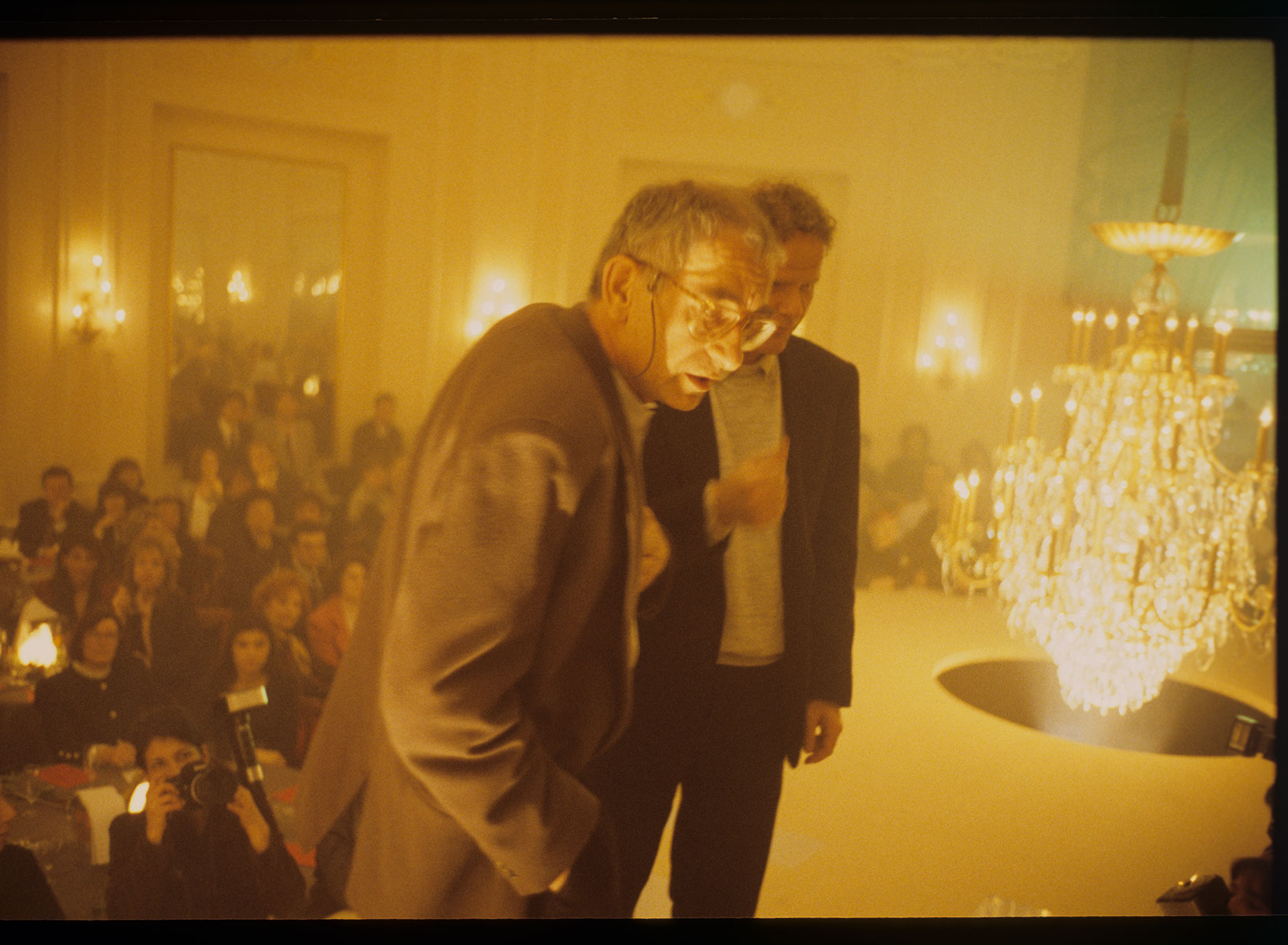 Krzysztof Kieślowski (director) and translator Roman Gren on the set of the first fashion show with Valentine.