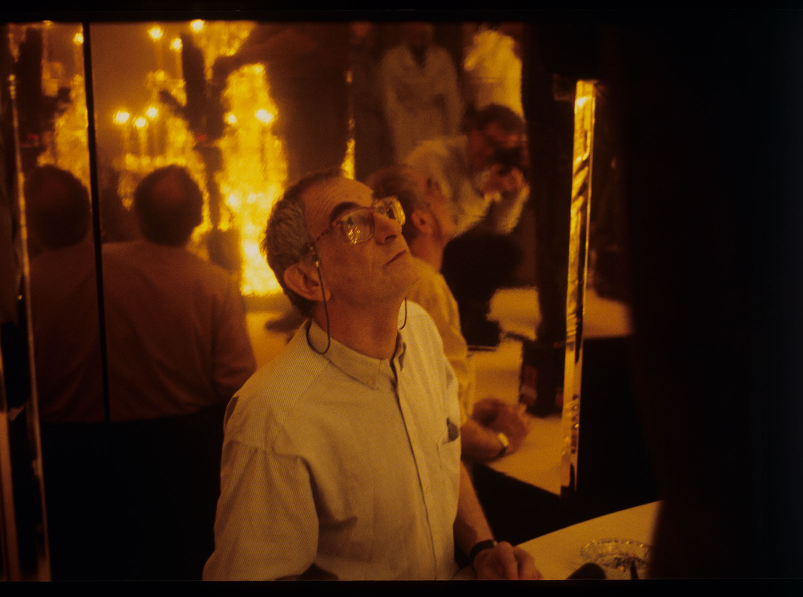 Krzysztof Kieślowski (director) on the set of the first fashion show with Valentine.