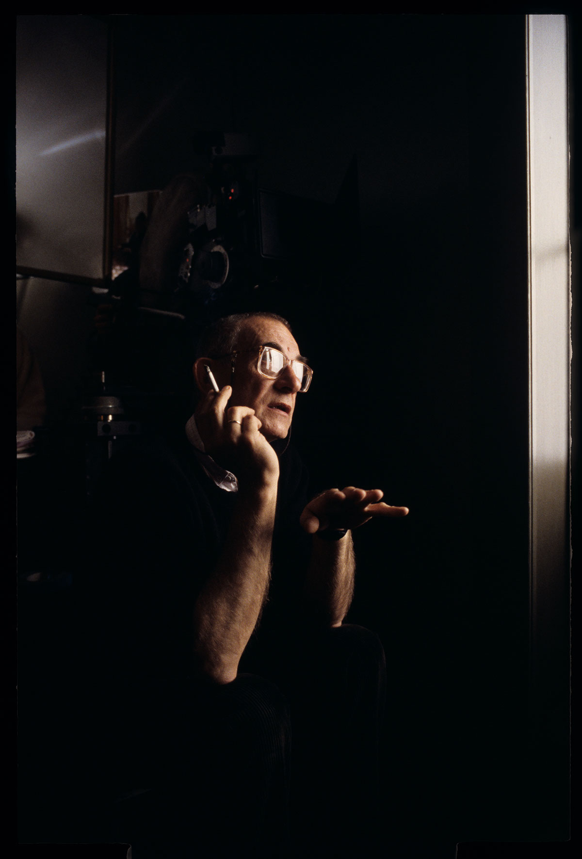 Krzysztof Kieślowski (director) on the set in the judge’s apartment.