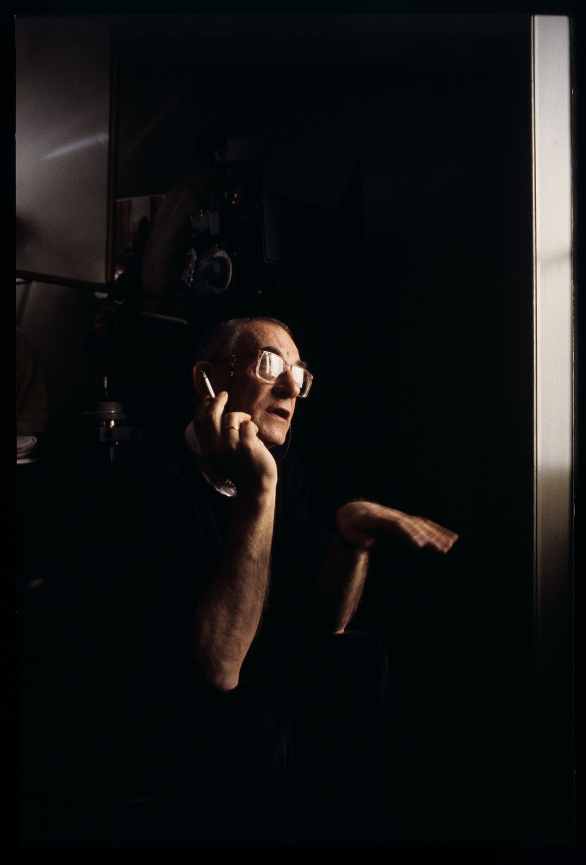 Krzysztof Kieślowski (director) on the set in the judge’s apartment.