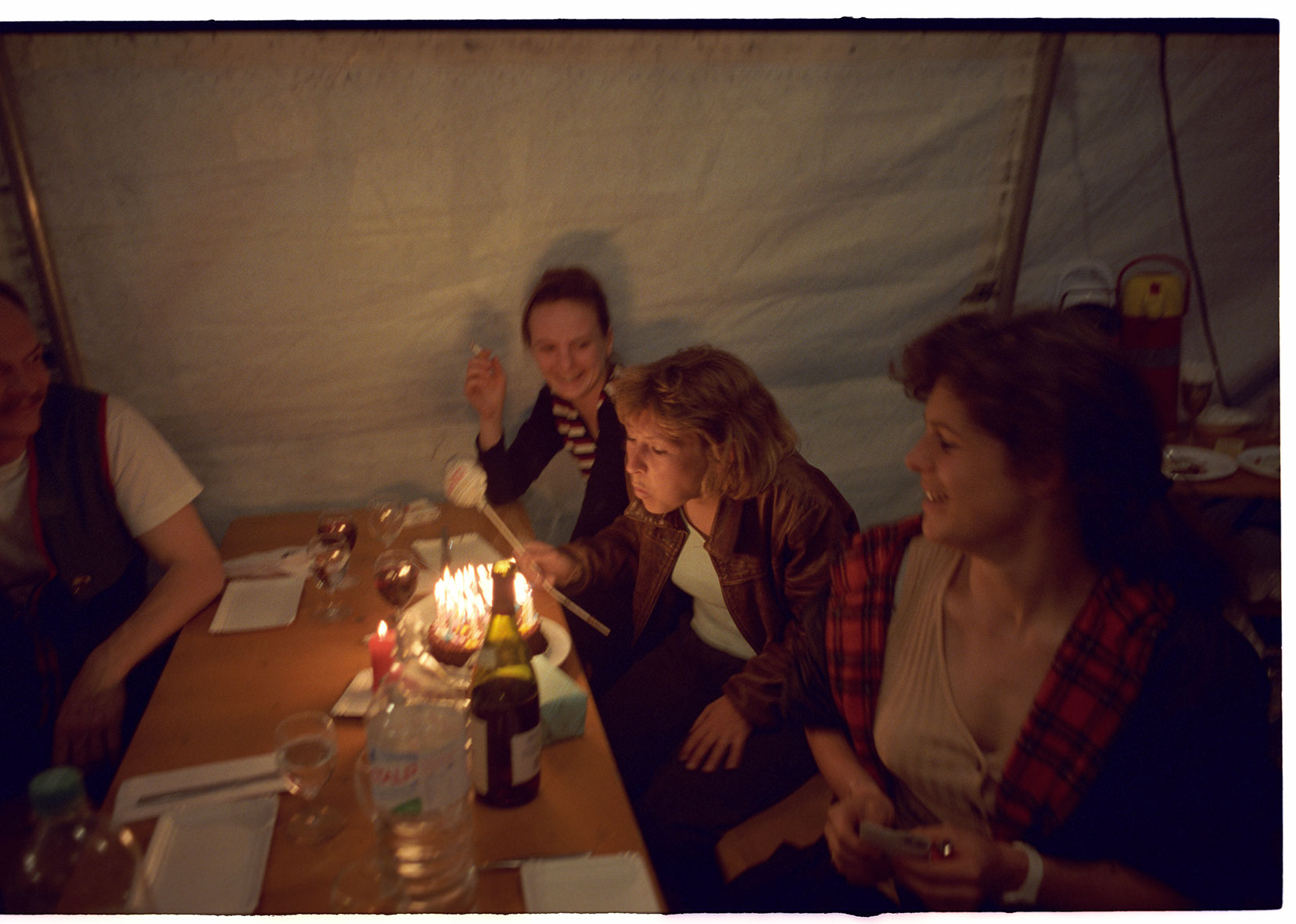 After the day of shooting, a crew meeting to celebrate the birthday of cameraman’s assistant Muriel Coulin.