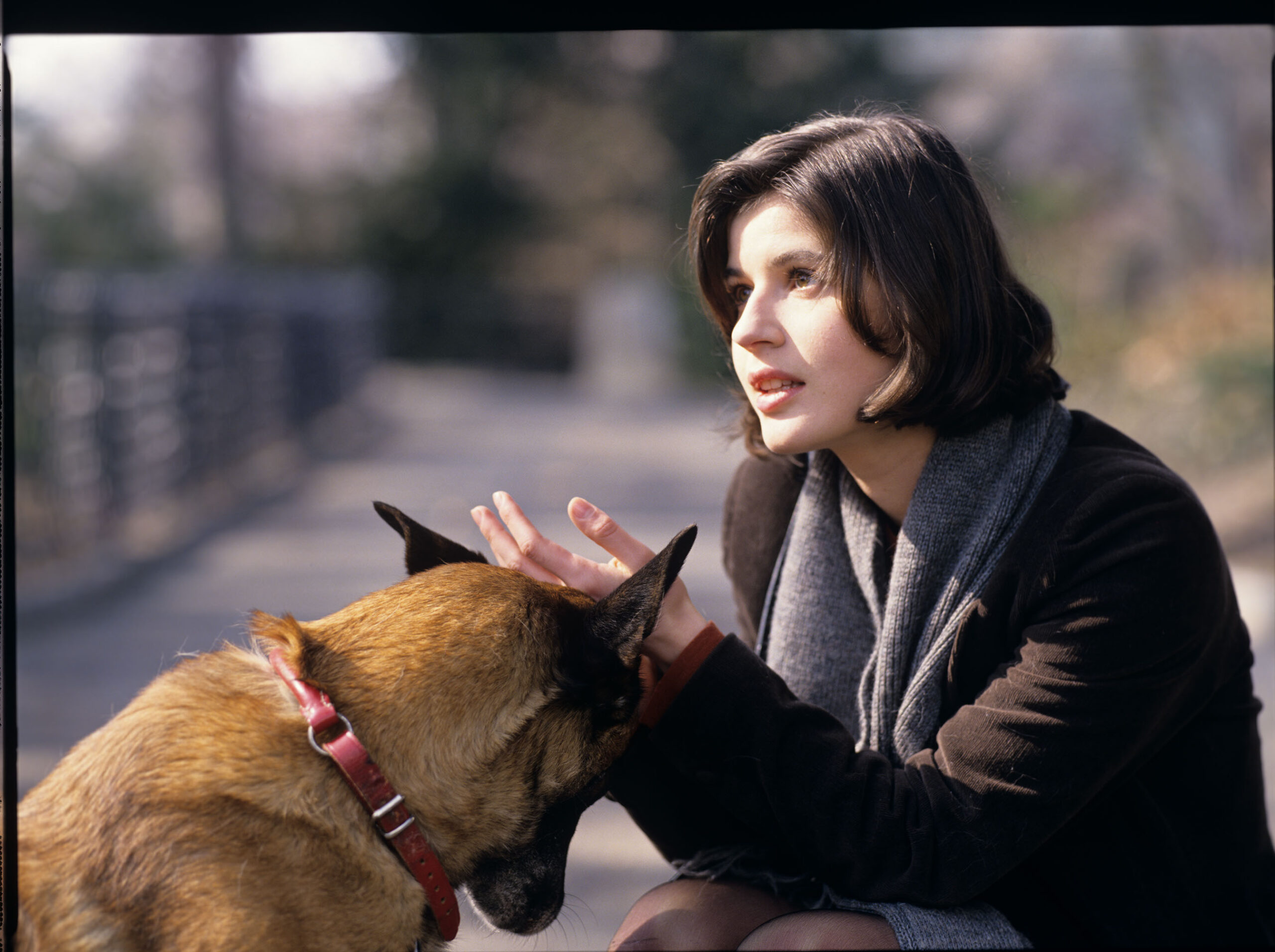 Valentine (Irene Jacob) and the dog Rita, whom Valentine accidentally hit with her car