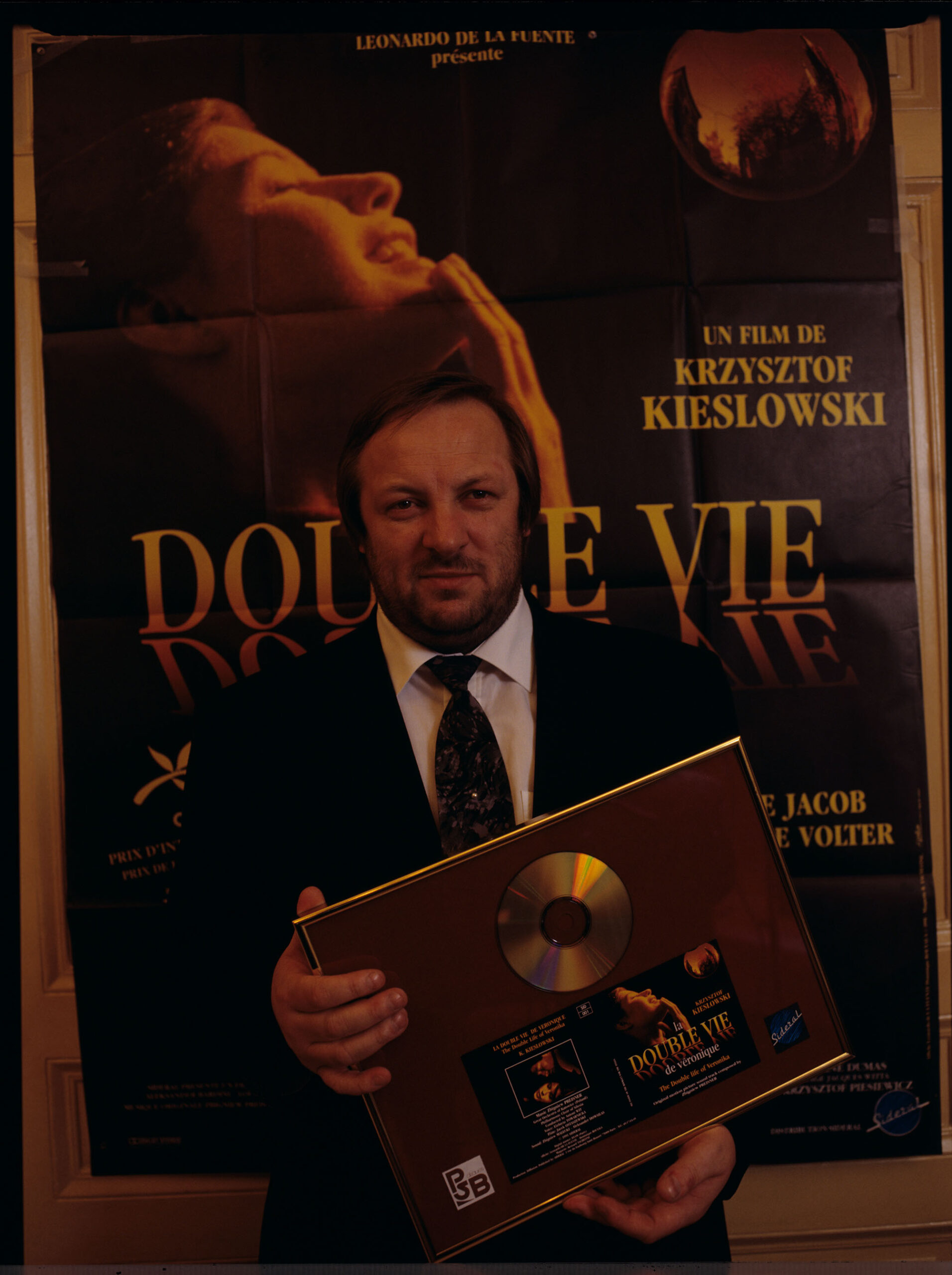 Zbigniew Praisner, composer of music for all parts of the “Three Colors” triptych, here with the award – a gold record received in Paris for the music for the film “The Double Life of Veronica”