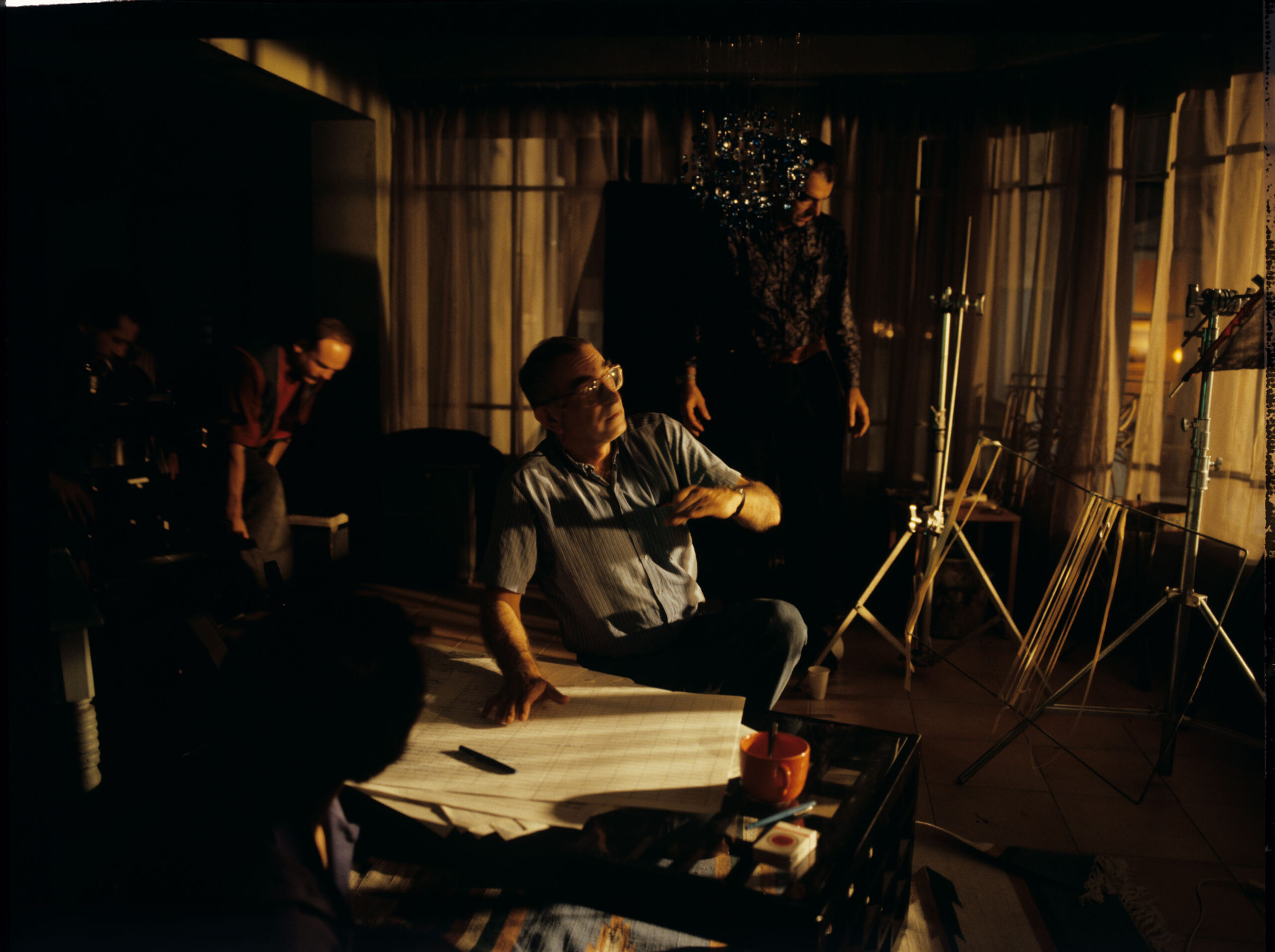 Working on set in Julie’s Parisian apartment. The photo shows: Krzysztof Kieślowski (director), Sławomir Idziak (cinematographer), Henryk Jedynak (cameraman’s assistant).