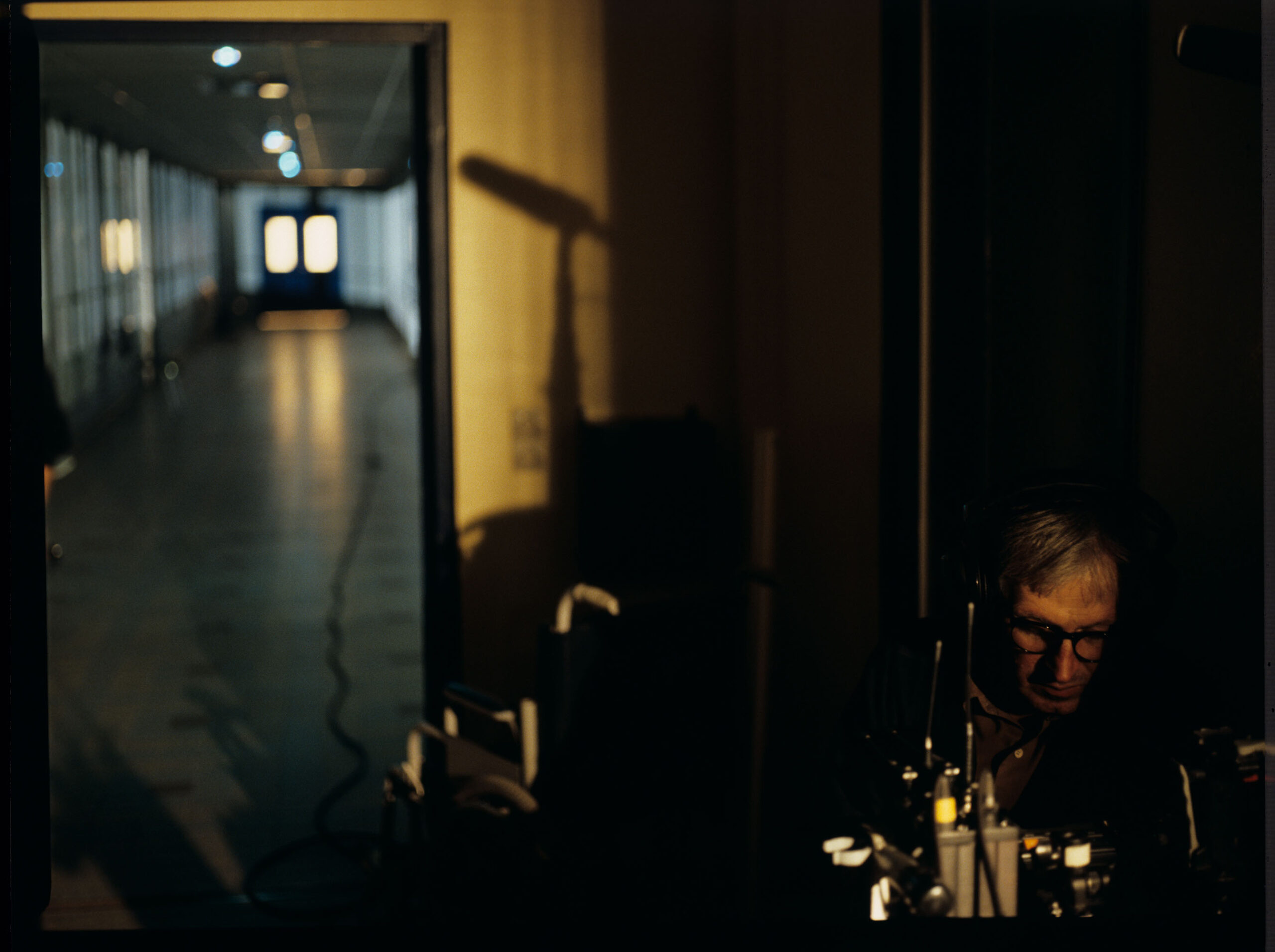 Sound crew chief Jean-Claude Laureux on set in the hospital where Julie was admitted after a car accident.