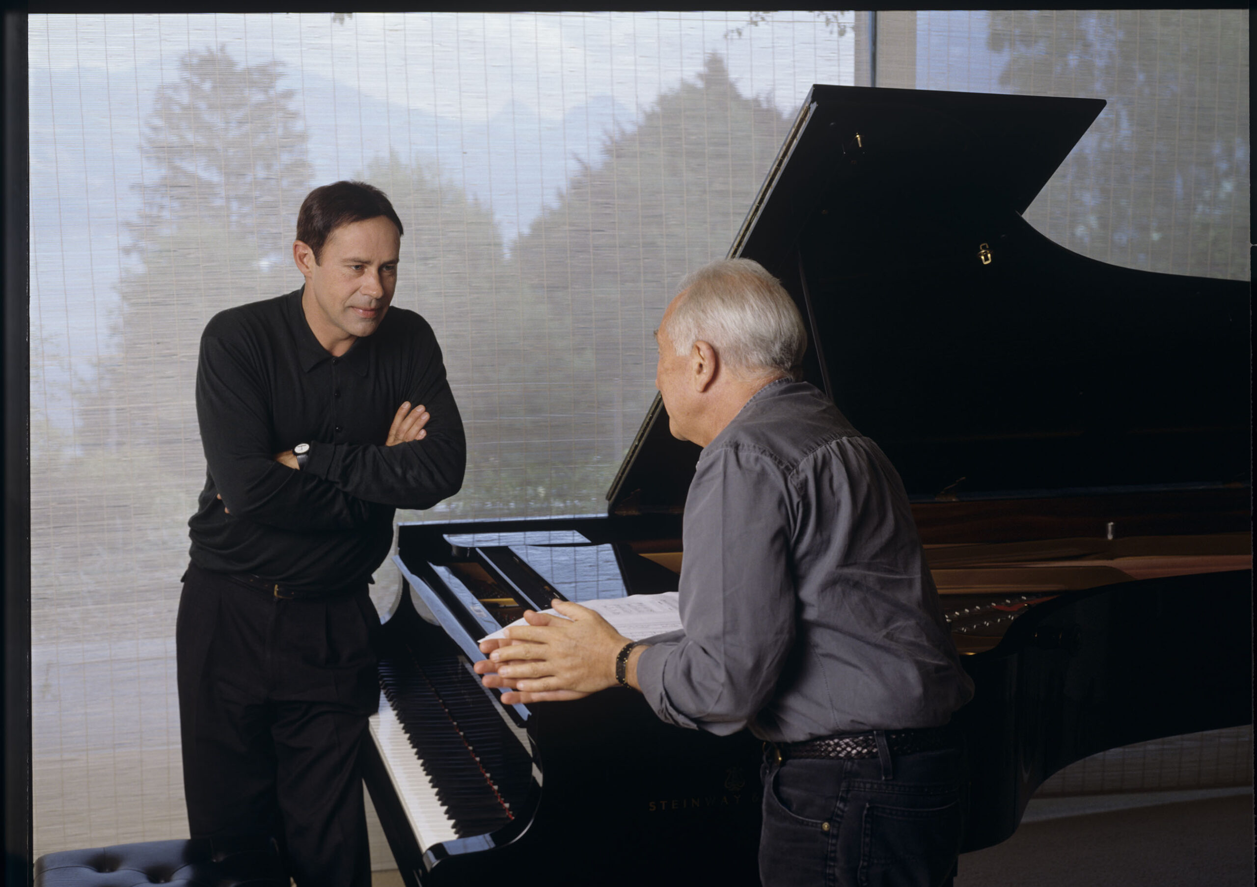 A joint photograph of composer Patrice de Courcy (Hugues Quester) with Alexis Weissenberg, a pianist and musician. This photograph was used in the film during a scene featuring a television interview conducted by a journalist with Patrice’s assistant, Olivier.