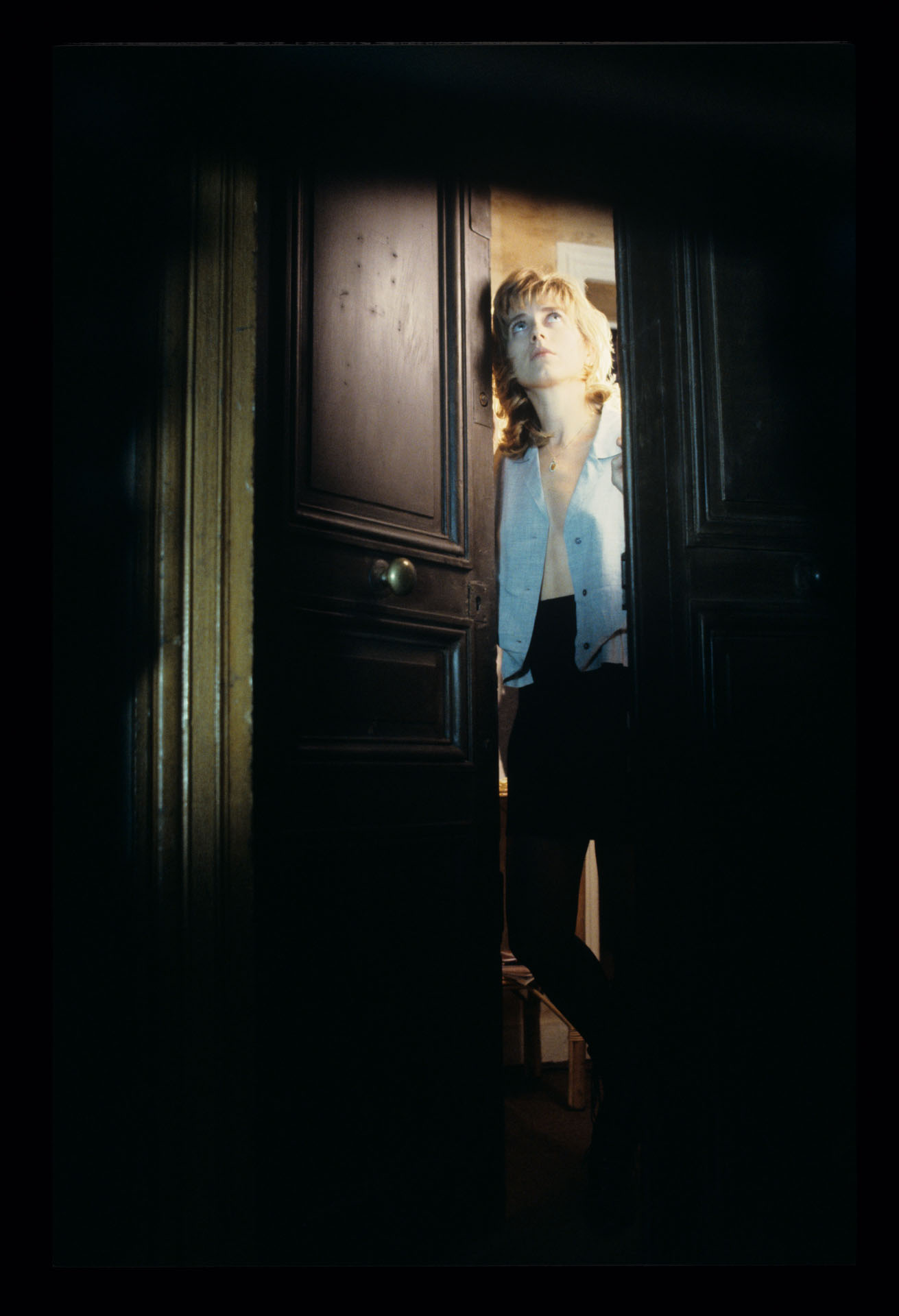 Lucille, Julie’s neighbor (played by Charlotte Very) at the door of her apartment, waiting for the man she has an appointment with.
