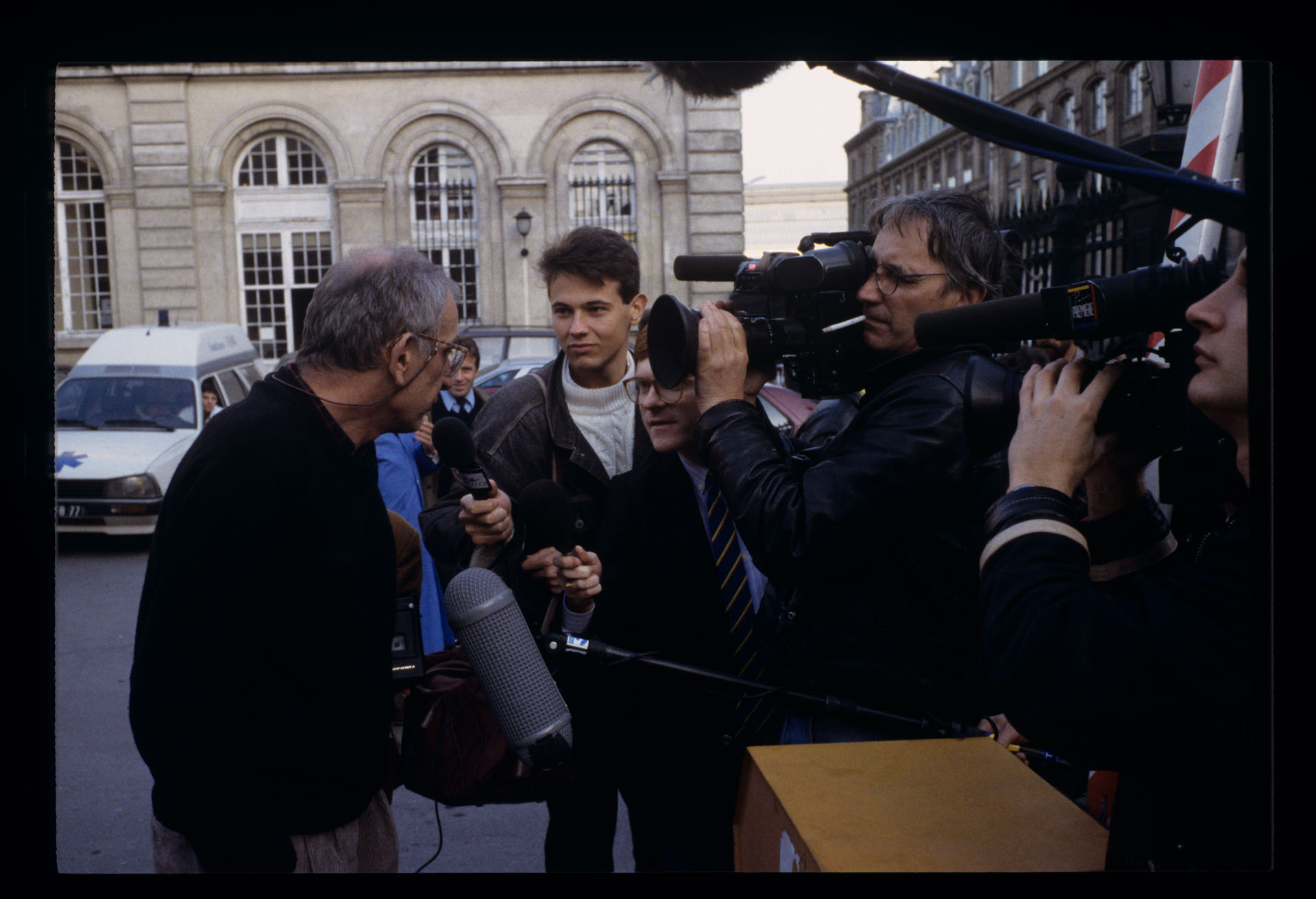 Krzysztof KIeślowski (director) gives an interview to French journalists.