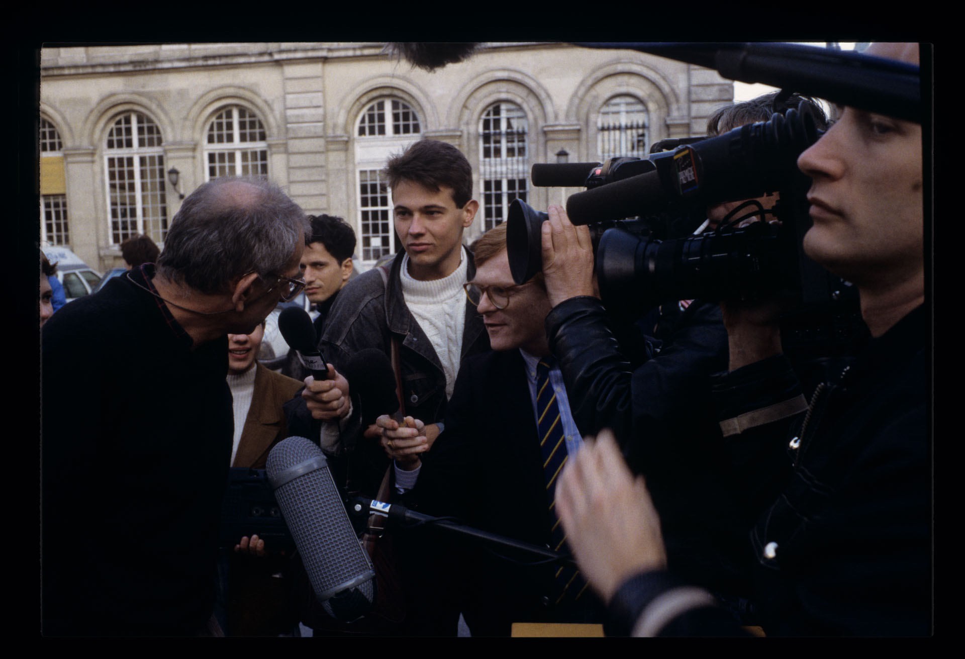 Krzysztof KIeślowski (director) gives an interview to French journalists.