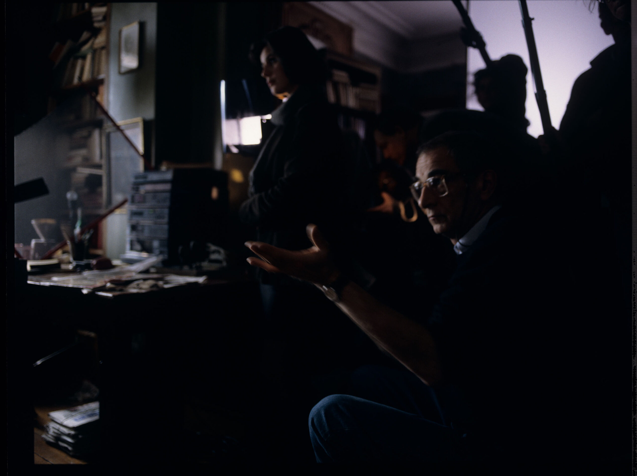 Krzysztof Kieślowski (director) and Irene Jacob (playing Valentine) on the set in the judge’s apartment.