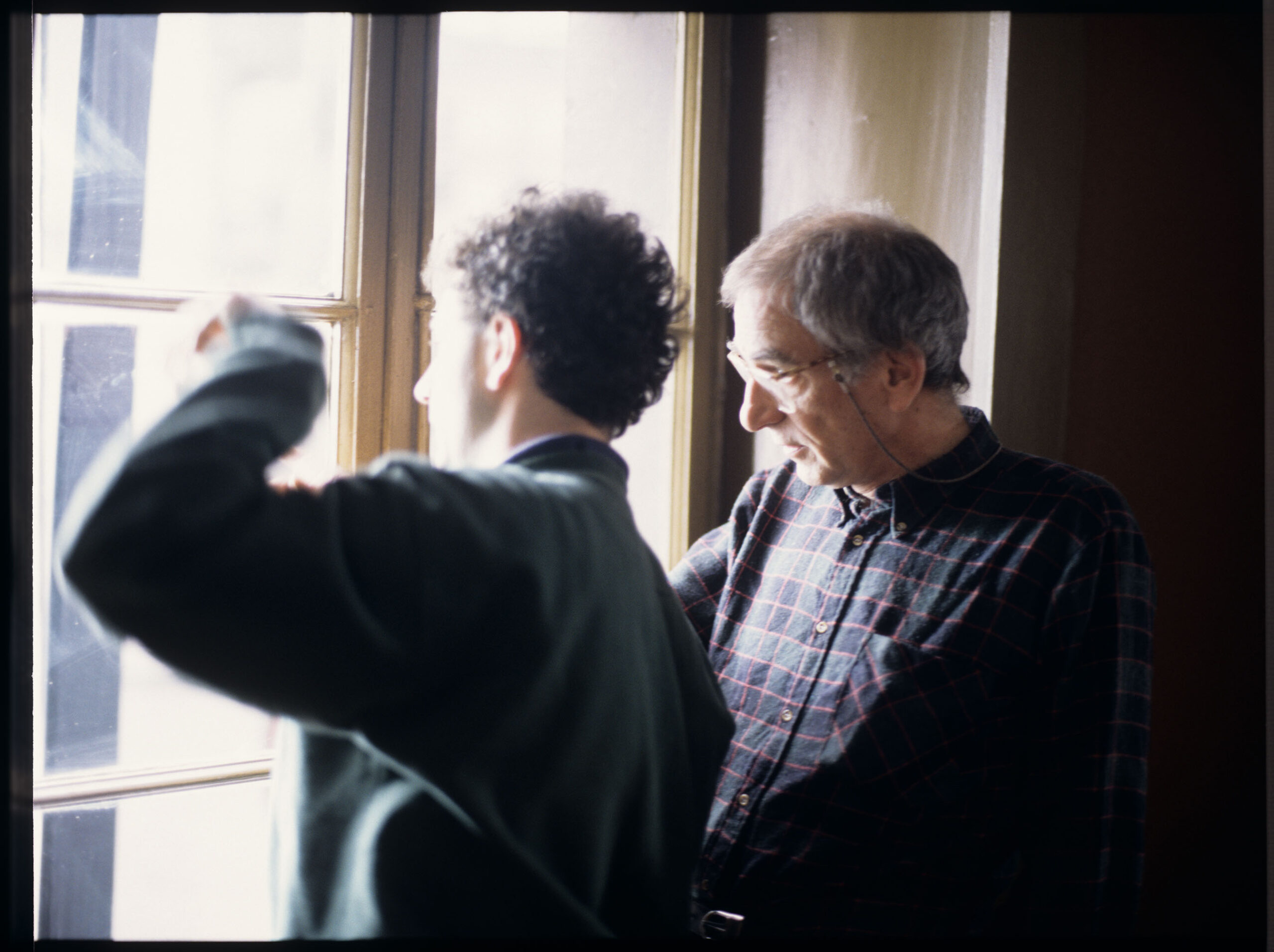 Krzysztof Kieślowski (director) and his assistant Emmanuel Finkiel on the shooting set.