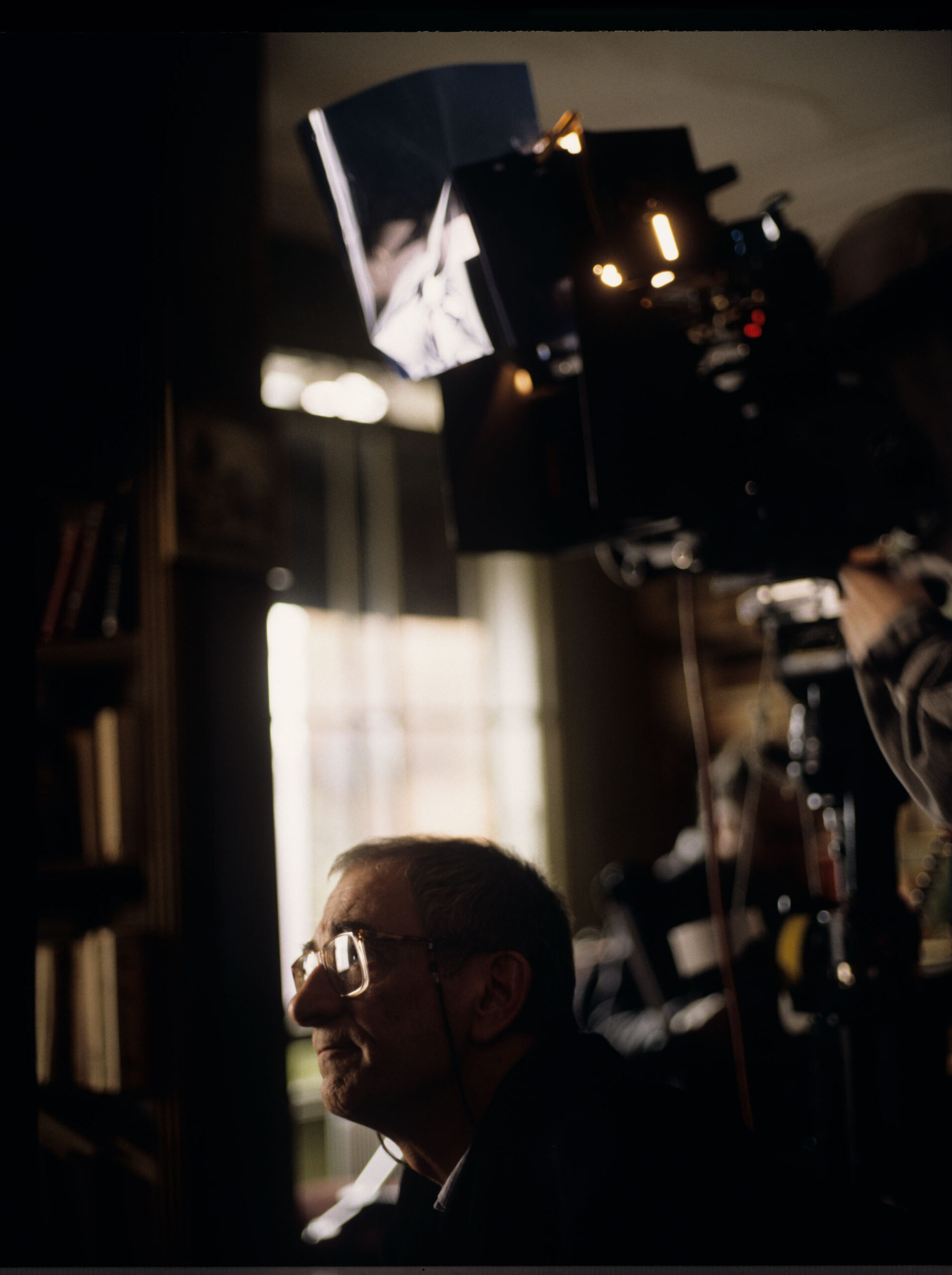 Krzysztof Kieślowski (director) on the set in the judge’s apartment.